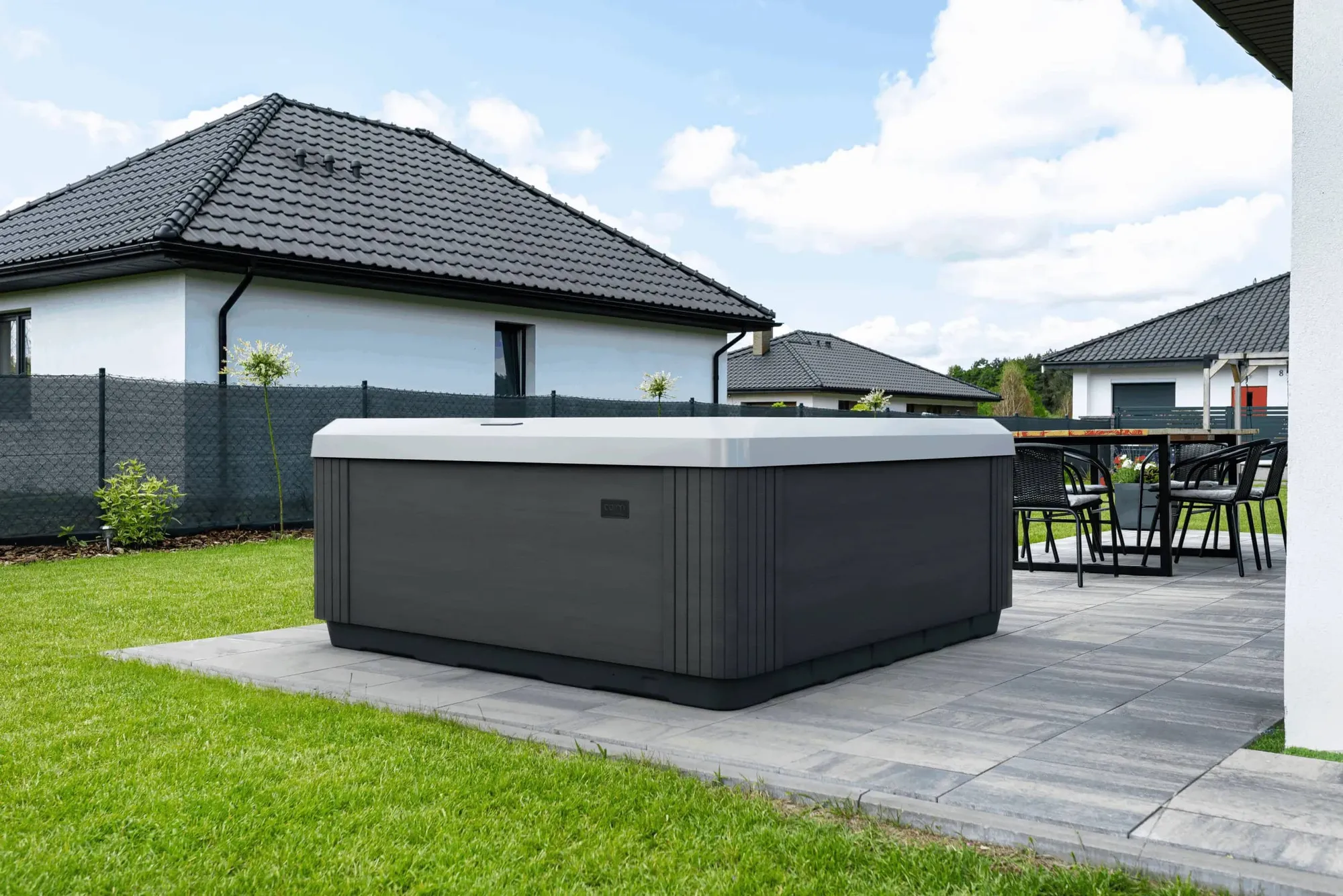 Premium stainless steel bezels add a touch of modern elegance and durability. These distinct accents enhance the spa’s aesthetic with a clean, luxury look.